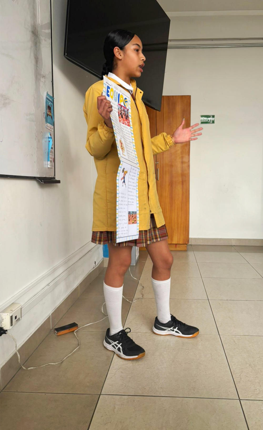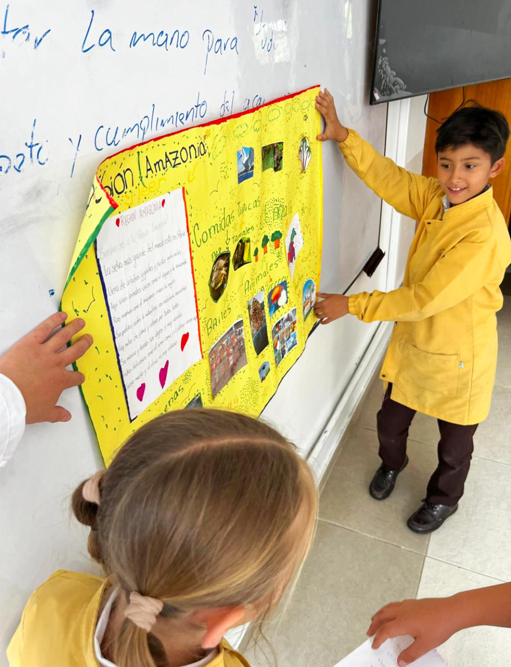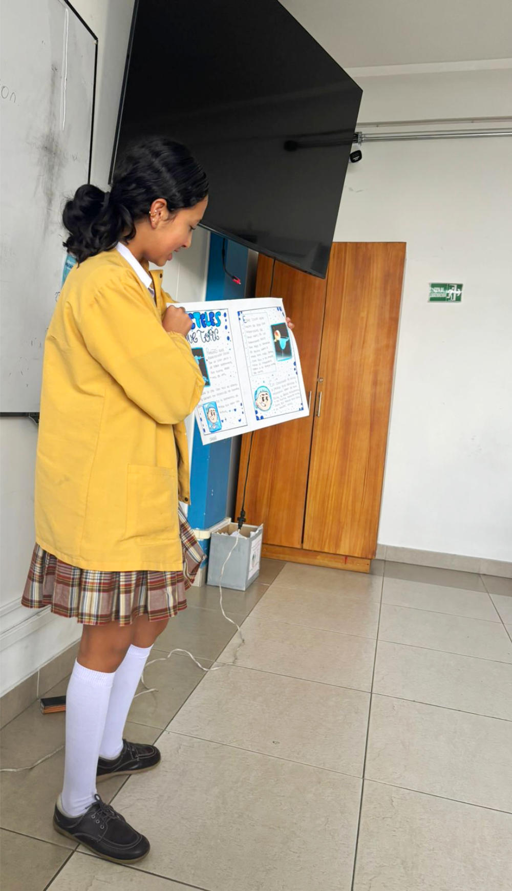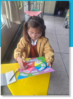 Fourth grade did a very creative and meaningful end-of-unit activity from the book, in which the students designed their own invention, taking into account their preferences and interests. During the process, they created an oral and written production to describe their invention, how it works, and the purpose it would have in everyday life. Finally, they shared their ideas with their classmates, showing enthusiasm, imagination, and teamwork. This activity was very important because it helped strengthen communication skills, develop creativity, and promote confidence when speaking in public. In addition, it encouraged critical thinking and the ability to solve problems in innovative ways. The students greatly enjoyed presenting their inventions and demonstrated how much they can achieve when they combine learning with fun and imagination.El grado cuarto realizó una actividad final de unidad del libro, muy creativa y significativa, en la cual los estudiantes diseñaron su propio invento teniendo en cuenta sus preferencias e intereses. Durante el proceso, elaboraron una producción oral y escrita para describir su invento, su funcionamiento y el propósito que tendría en la vida cotidiana. Finalmente, compartieron sus ideas frente a sus compañeros, mostrando entusiasmo, imaginación y trabajo en equipo. Esta actividad fue muy importante porque permitió fortalecer habilidades comunicativas, desarrollar la creatividad y fomentar la confianza al expresarse en público. Además, promovió el pensamiento crítico y la capacidad de resolver problemas de manera innovadora. Los estudiantes disfrutaron mucho presentando sus inventos y demostraron cuánto pueden lograr cuando combinan el aprendizaje con la diversión y la imaginación.
