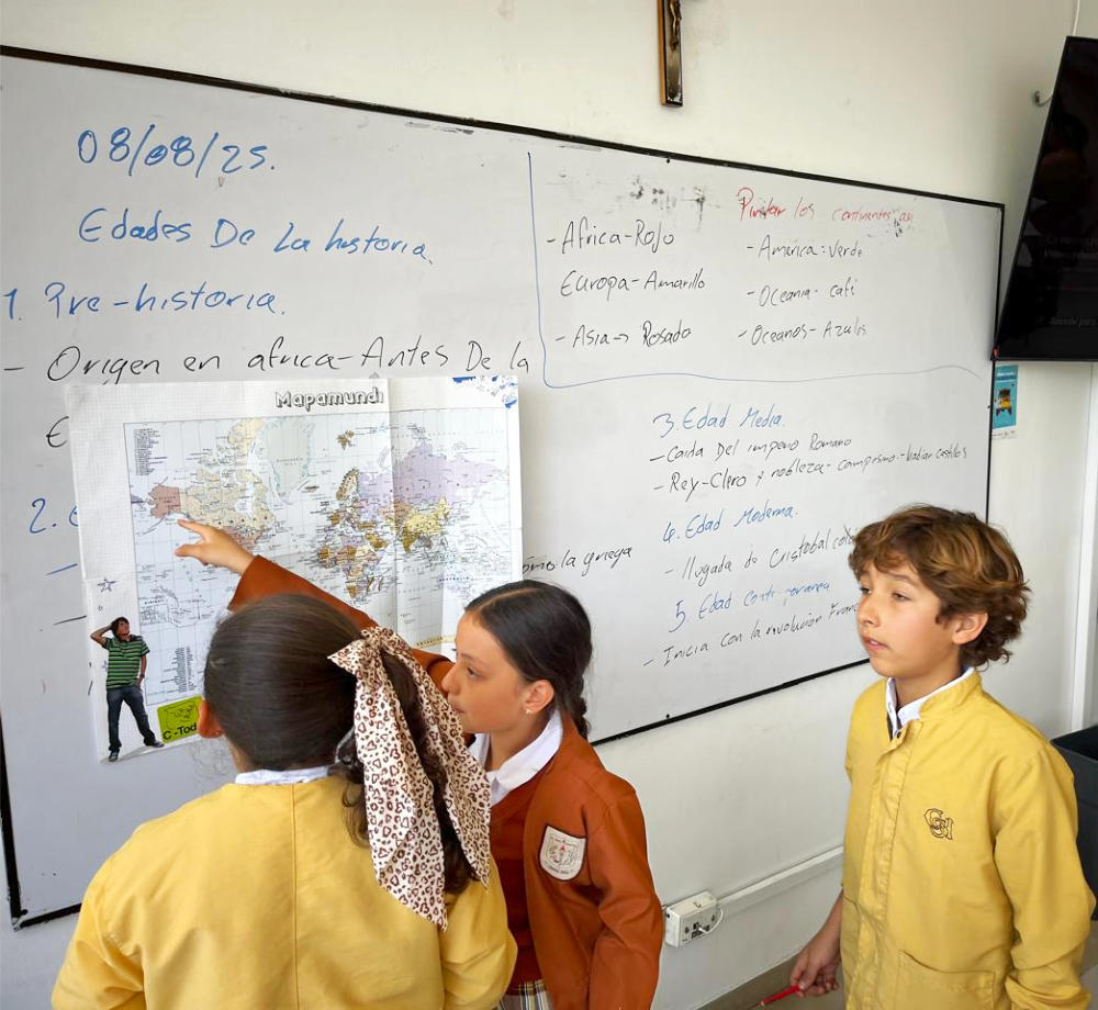 Desde el área de matemáticas, los estudiantes de tercero realizaron una divertida y significativa actividad en clase, enfocada en el aprendizaje de la longitud en centímetros y decímetros. Durante la jornada, los niños, con sus metros y reglas en mano, recorrieron el salón midiendo diferentes objetos como mesas, cuadernos, sillas o incluso entre ellos mismos, con el propósito de poner en práctica lo aprendido en clase. Organizados en pequeños grupos, trabajaron de manera colaborativa, comparando medidas y registrando sus resultados con entusiasmo. La experiencia permitió fortalecer su comprensión sobre las unidades de medida, además de fomentar la curiosidad, la observación y el trabajo en equipo. Al finalizar, cada grupo compartió sus hallazgos, demostrando gran interés por descubrir la utilidad de las matemáticas en su entorno. Fue una experiencia activa, dinámica y muy enriquecedora para todos.